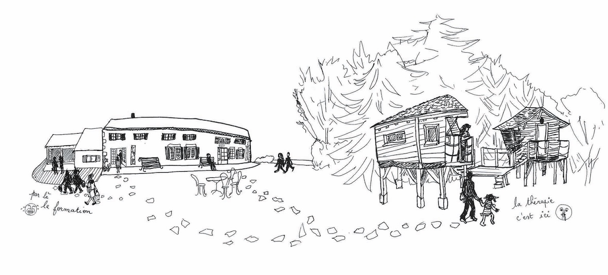 Il n’ y a pas ici de secret à être en thérapie, ou à faire partie de tel ou tel groupe de thérapie. C’est une façon de se repérer dans le paysage des Cabanes. Chacun s’emploie pourtant à préserver ces espaces privilégiés de confidentialité intime pour se donner la chance d’y grandir en sécurité. Cela en fait parfois quelque chose de mystérieux… Imaginez-les comme des ateliers où se forgent les personnalités, pas vraiment différentes et pourtant… pour finir, plus matures, plus sûres, plus libres…